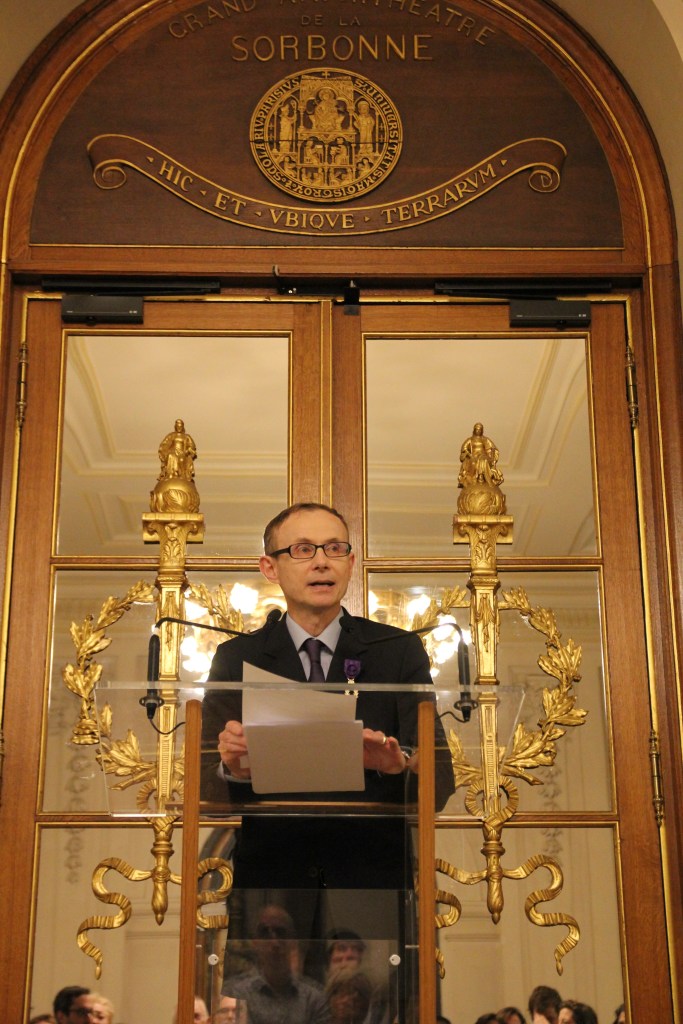 Le 18 avril dernier en Sorbonne, Salle des Autorités, le Ministre de l’Éducation nationale, Monsieur Jean-Michel Blanquer, a décoré le Professeur Olivier Houdé (Institut de Psychologie) du grade d’Officier dans l’Ordre des Palmes Académiques, en présence de très nombreuses autorités académiques et politiques dont le Recteur de Paris, Monsieur Gilles Pécout, le Conseiller Éducation, enseignement supérieur, recherche et innovation du Président de la République, Monsieur Thierry Coulhon, ainsi que des personnalités du monde scientifique, tels Jean-Pierre Changeux, Professeur honoraire au Collège de France et membre de l’Académie des sciences et Axel Kahn, Président honoraire de l’Université Paris Descartes.